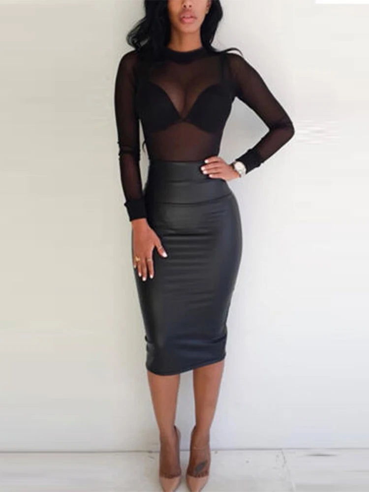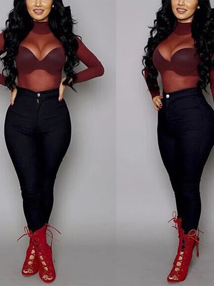 Eleva tu look nocturno con este top de malla transparente de manga larga que combina sensualidad y elegancia. Su diseño entallado y cuello alto crea un efecto sofisticado mientras resalta tu silueta de manera audaz.