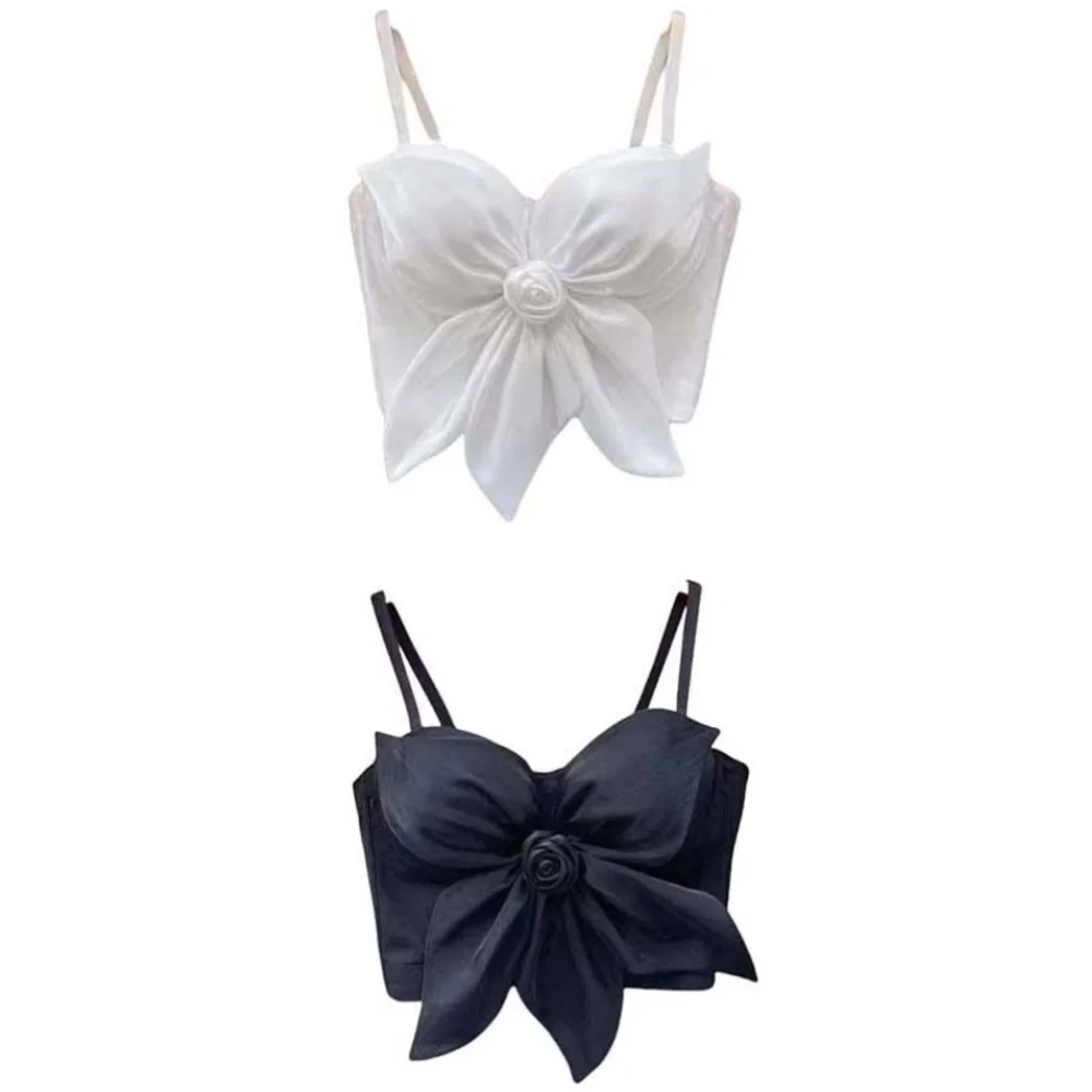 Deslumbra con este top corsé de alta gama adornado con una delicada flor 3D al frente. Su diseño ajustado y sin mangas resalta la silueta, ofreciendo un look sofisticado y moderno perfecto para eventos de noche, cenas o fiestas.